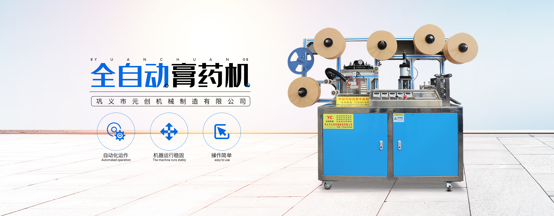 鞏義市元創(chuàng)機械制造有限公司是一家致力于中醫(yī)膏藥貼設(shè)備自動化的設(shè)計、生產(chǎn)與銷售的企業(yè)。膏藥機廠家憑借在機械、電氣、工藝、材料等方面的技術(shù)團隊,已成為一家能提供非標(biāo)定制膏藥貼設(shè)備的制造商。